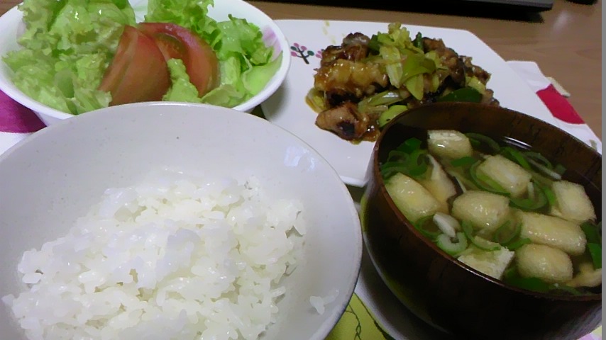 ・夕食 回鍋肉400円、サラダ(いただきもの)0円、お味噌汁50円